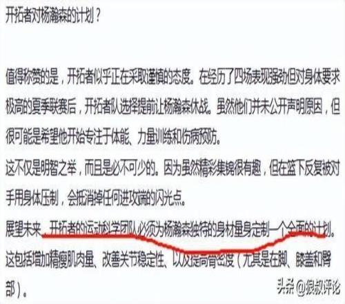 至于增重的话题,实际上杨瀚森结束了夏季联赛后,美国记者Yasmin Edañol曾报道,开拓者的运动科学团队必须为杨瀚森独特的身材量身定制一个全面的计划。这包括增加精瘦肌肉量、改善关节稳定性、以及提高骨密度(尤其是在脚、膝盖和臀部)。