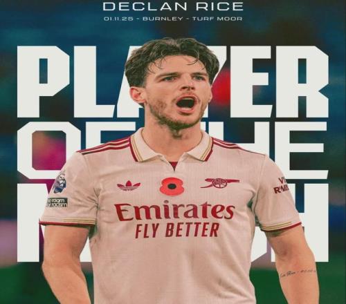 官方:赖斯被评为了本场比赛最佳球员。