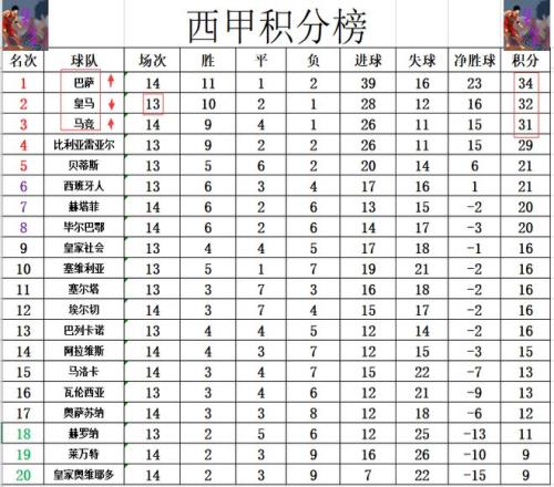 西甲最新积分战报巴萨逆转弱旅超皇马登顶马竞6连胜冲进前3