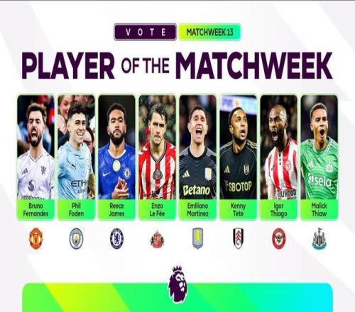 北京时间12月2日凌晨,英超官方公布了第13轮比赛的最佳球员候选,其中B费、福登、里斯-詹姆斯、达米安-马丁内斯等人在列。