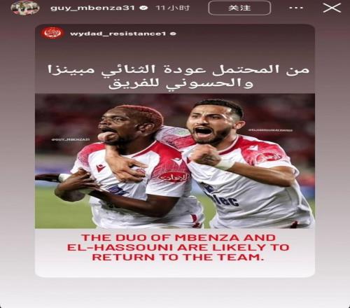 姆本扎转发的内容为摩洛哥球队维达德的球迷号,内容写道:“曾效力球队的前场组合姆本扎和哈苏尼可能重回球队效力。”