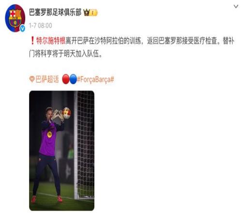 此时发生伤病,似乎让特尔施特根的转会出现了一些不确定性。好消息是,当地时间1月8日,特尔施特根在自己的社媒发布状态,宣布自己将归队,备战西超杯决赛。
