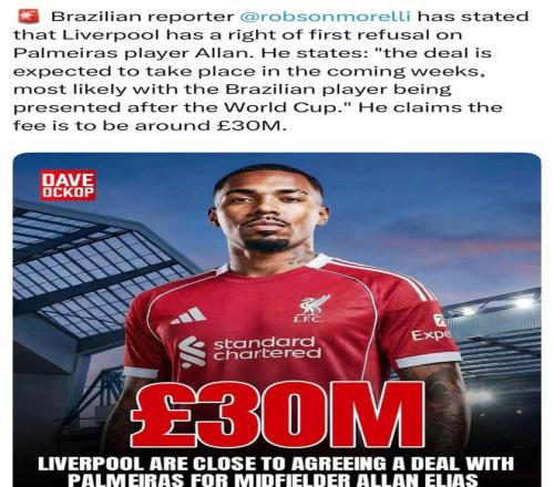 相信大家都刷到了所谓利物浦与帕尔梅拉斯边锋阿兰的绯闻,这种巴西境内孤立源,我不能说完全不可能,但参考过去巴西/拉美/日本的孤例:帕托、久保健英以及维尔塔(声称自己差点被利物浦签下),大家可以自行判断。